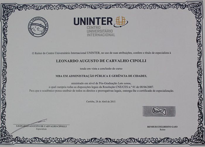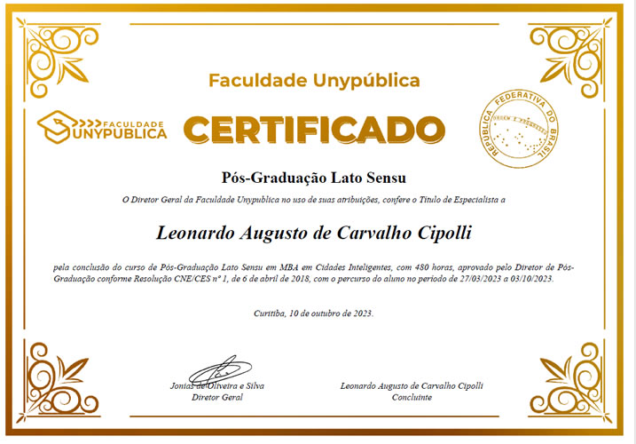 A formação MBA em gestão pública e gerência de cidades, e agora em MBA em Cidades Inteligentes, trouxe a visão que faltava para novos desafios no setor público com excelência, atento a legislação e com sabedoria para selecionar o que é essencial a população.