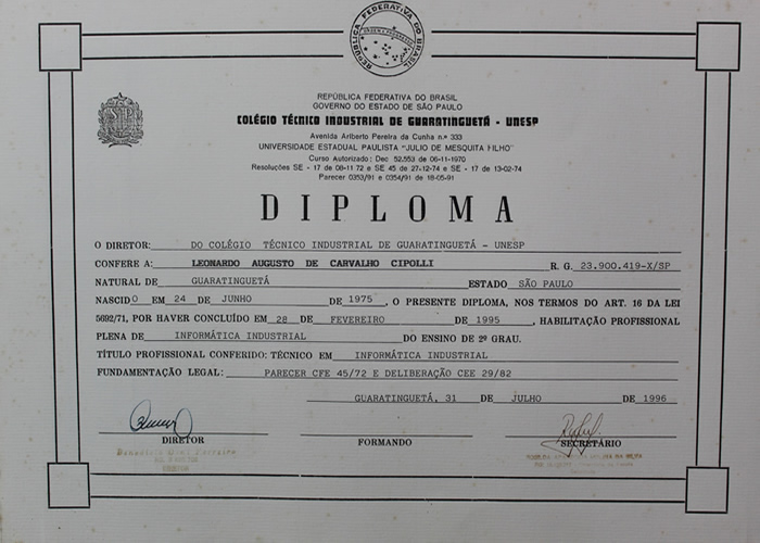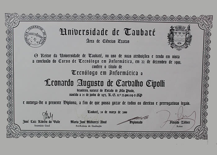 Léo Cipolli, 50 anos, filho de professores, nascido em Guaratinguetá-SP, se formou programador de computadores com 11 anos, e aos 17 se tornou técnico em informática pela Unesp. Concluiu as faculdades de tecnologia da informação e licenciatura plena em pedagogia. Concluiu também a pós graduação em desenvolvimento de sistemas para internet, MBA em gestão pública e gerência de cidades e MBA em cidades inteligentes.